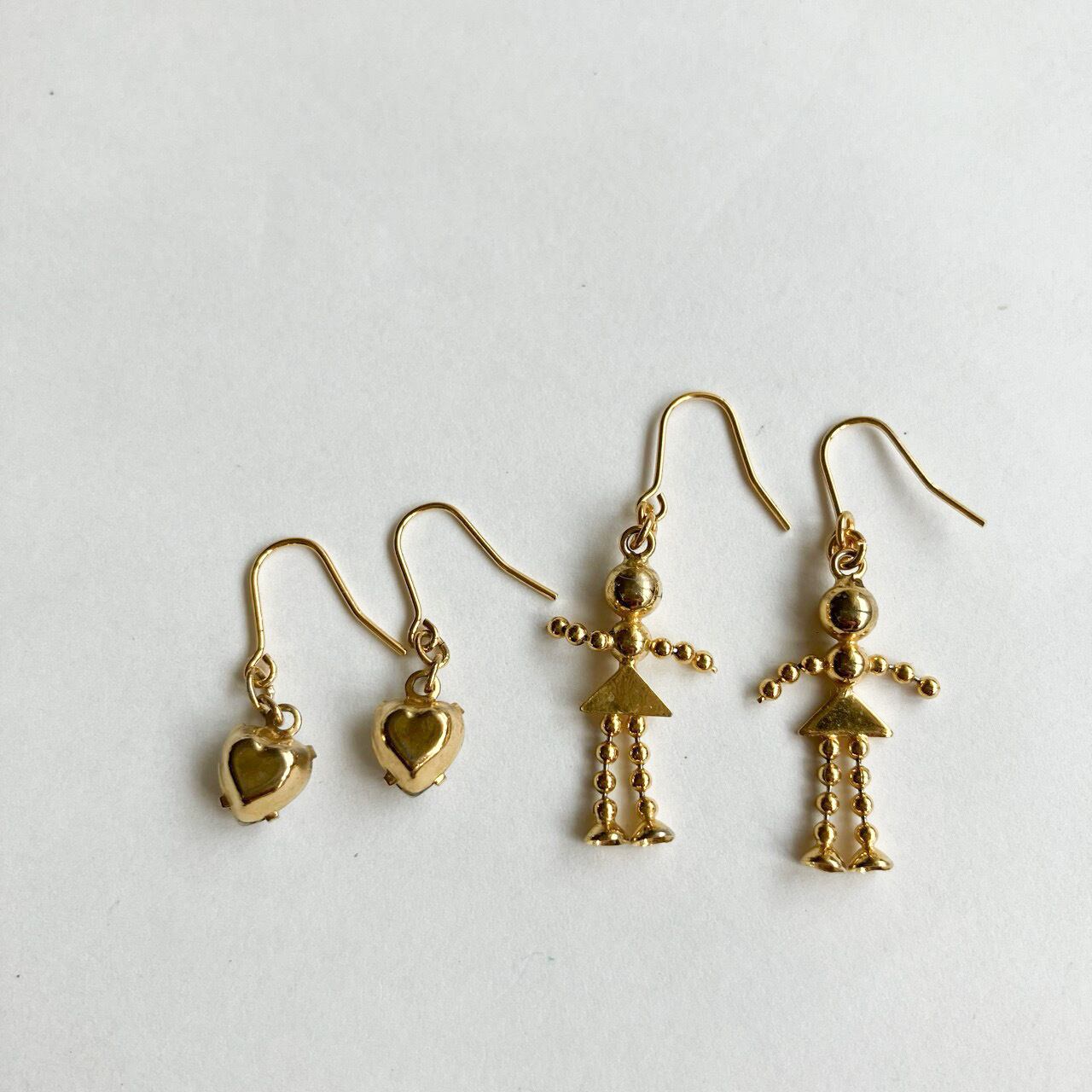 gold girl dangle pierce[p-1178] & rhinestone heart dangle pierce[p-1179] set ヴィンテージピアス