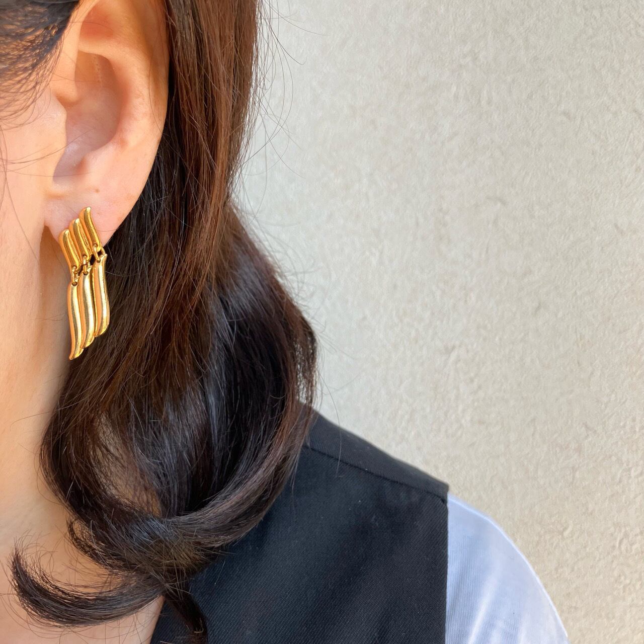 ゴールドメタルのオブジェのようなパーツが揺れるお洒落で洗練されたデザインが、とても素敵な”AVON”(エイボン)のヴィンテージピアスです。