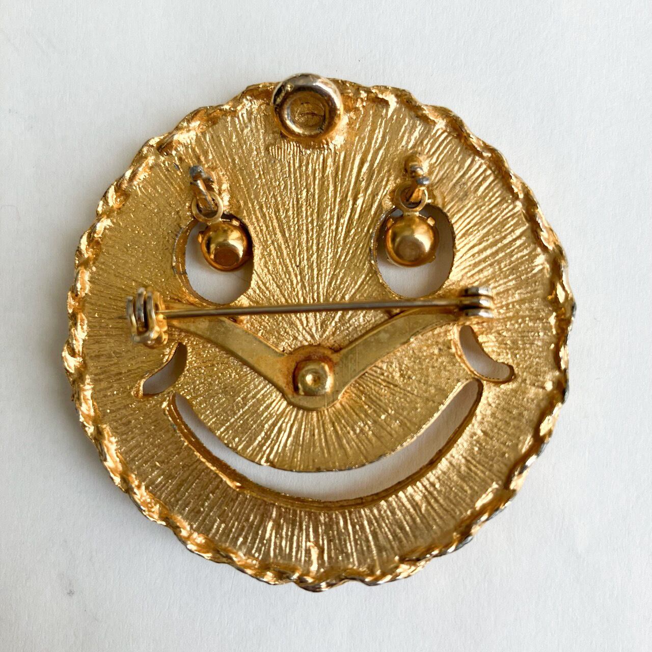 gold & rhinestone smile face brooch[b-482] ヴィンテージブローチ