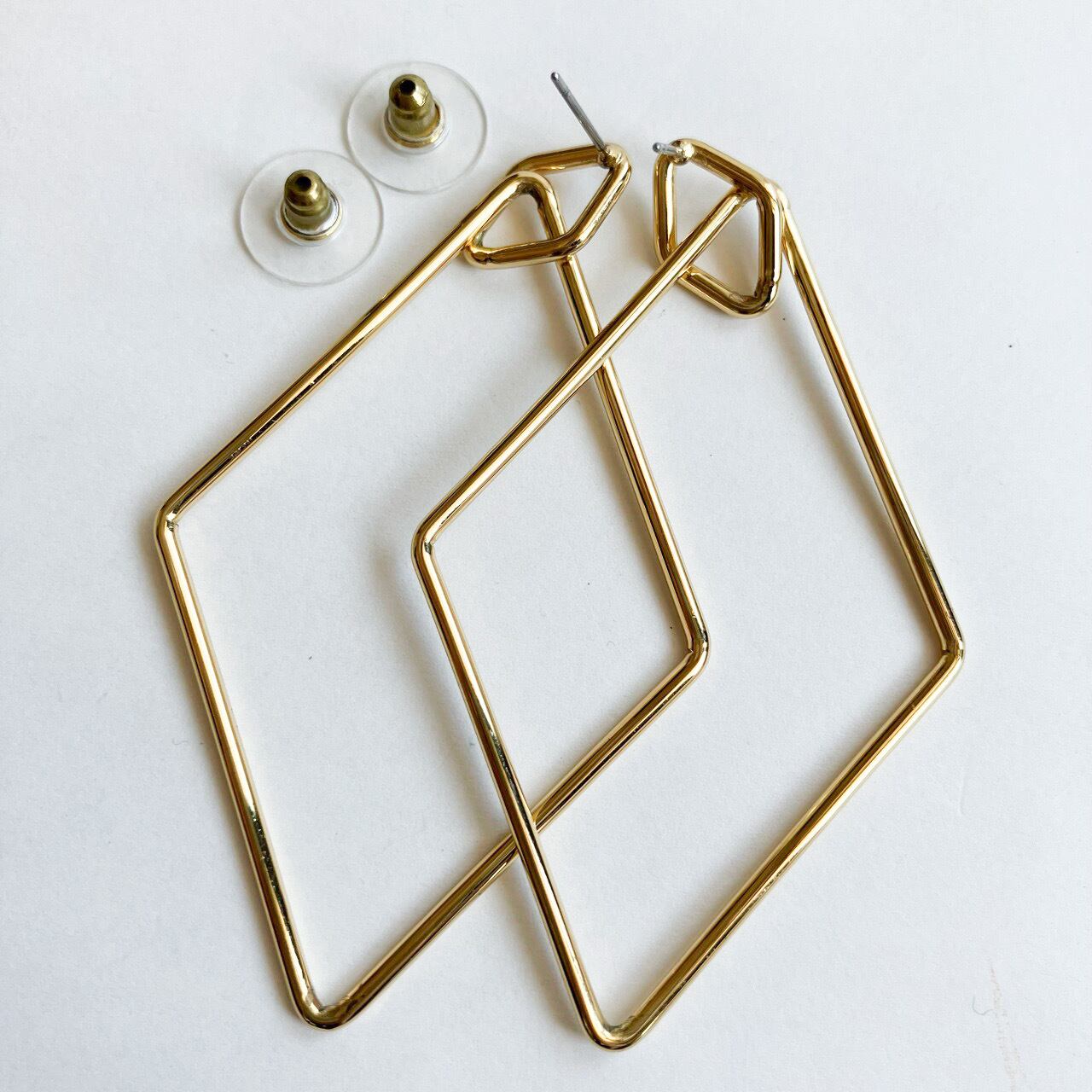 ゴールドメタルのモダンなオブジェのような菱形パーツが揺れるデザインが、とてもお洒落なヴィンテージピアスです。
