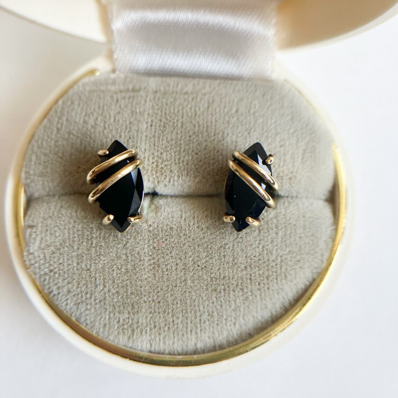 シャープなブラックラインストーンをゴールドワイヤーでくるんだようなお洒落なデザインが、とても素敵なヴィンテージピアスです。