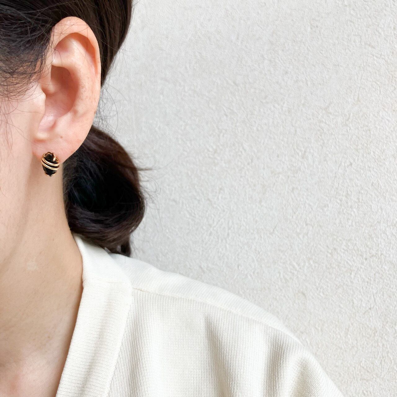 片方のピアス針のゴールド色の割合が多いですが、元々の作りかと思います。
