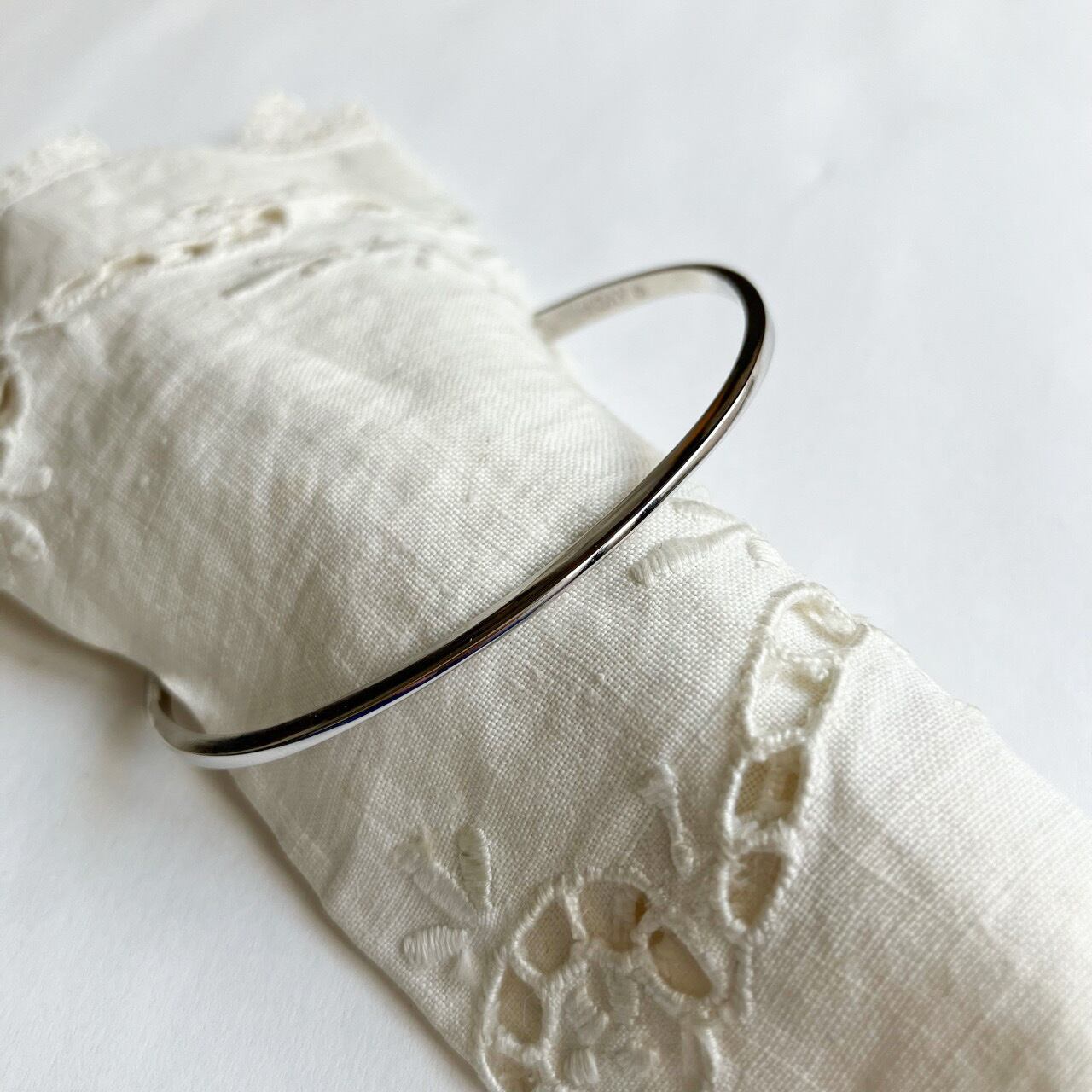 センターは細く、サイドに行くにつれてフラットな形になっていく、シンプルで洗練されたさりげないお洒落なデザインが、とても素敵な”AVON”(エイボン)のシルバーメタルのヴィンテージブレスレットです。