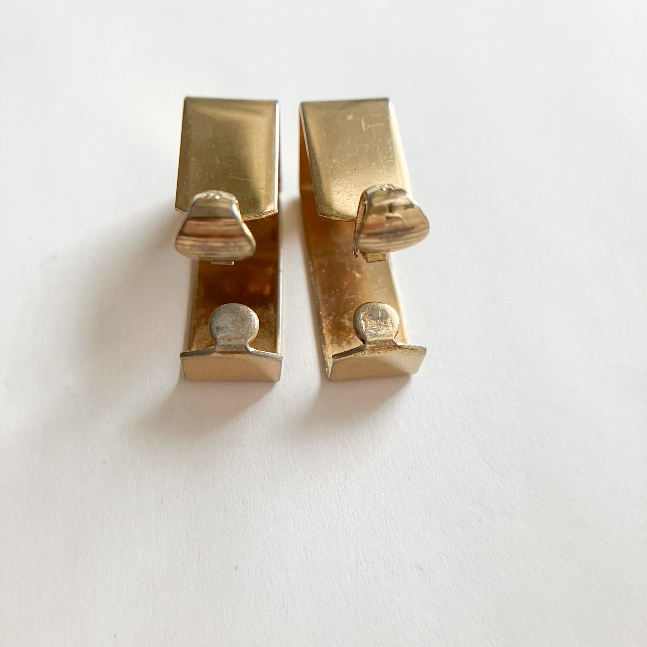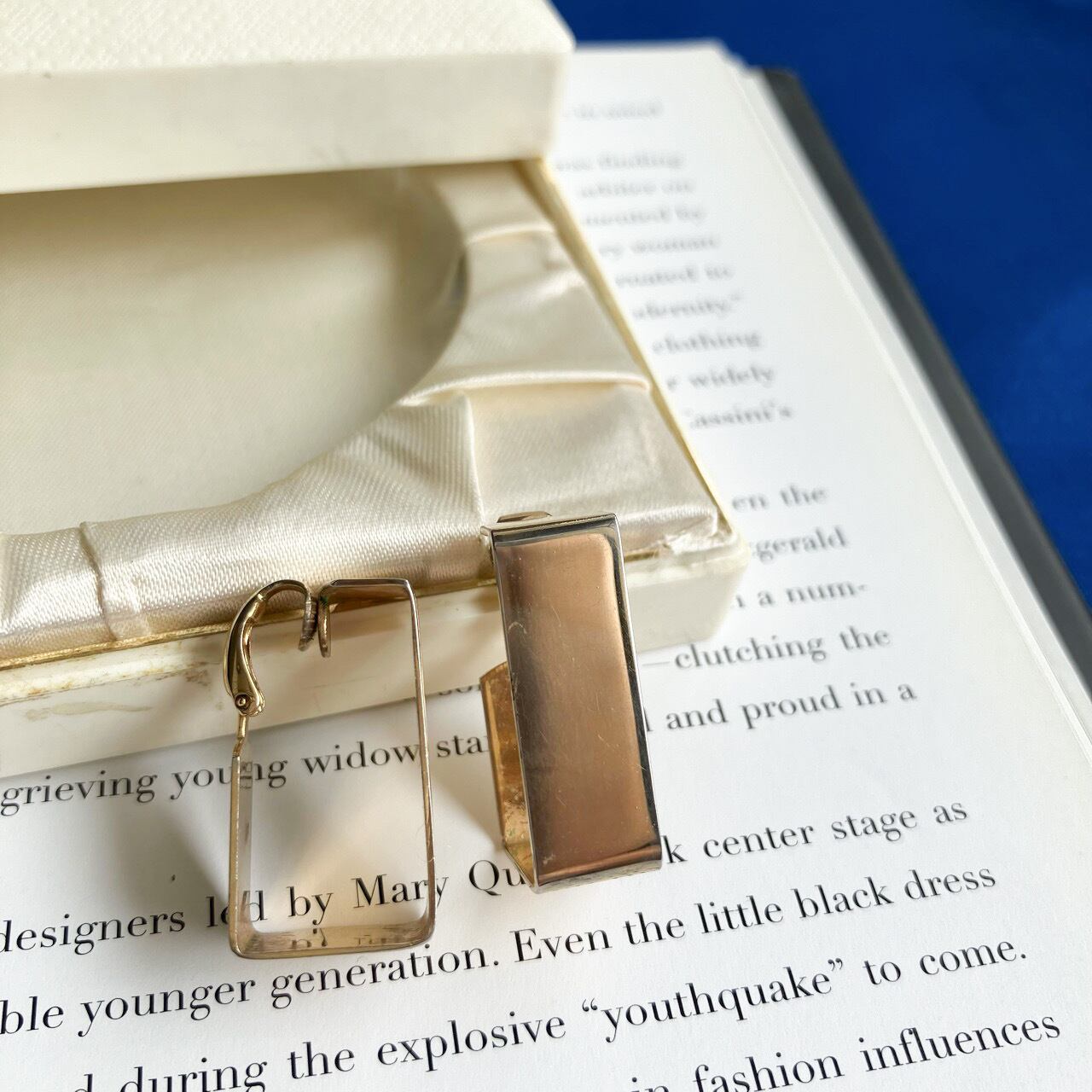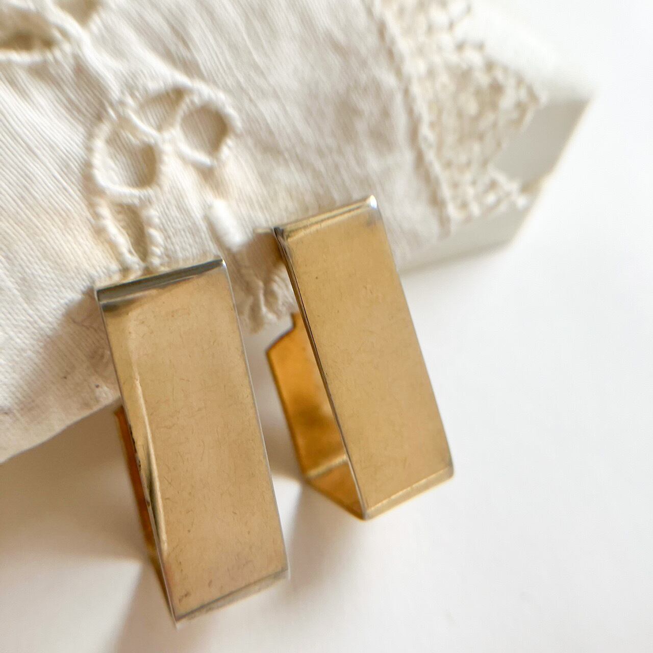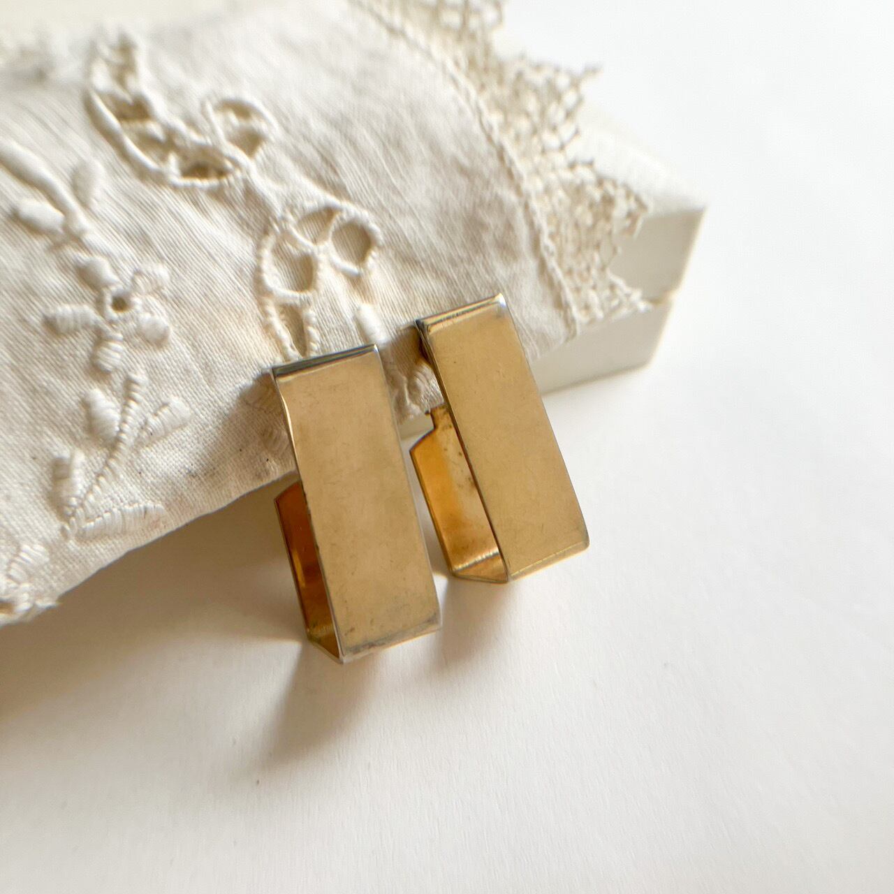 1949年に設立されたジュエリーメーカー”Sarah Coventry”(サラコベントリー )の、ゴールドメタルの長方形のオブジェのようなフープデザインがモダンでとても素敵なヴィンテージイヤリングです。