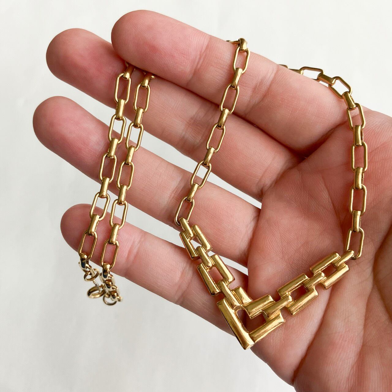 ゴールドメタルチェーンのVデザインがアクセントになった、レトロ感のあるお洒落な雰囲気が、とても素敵な”AVON”(エイボン)のヴィンテージネックレスです。