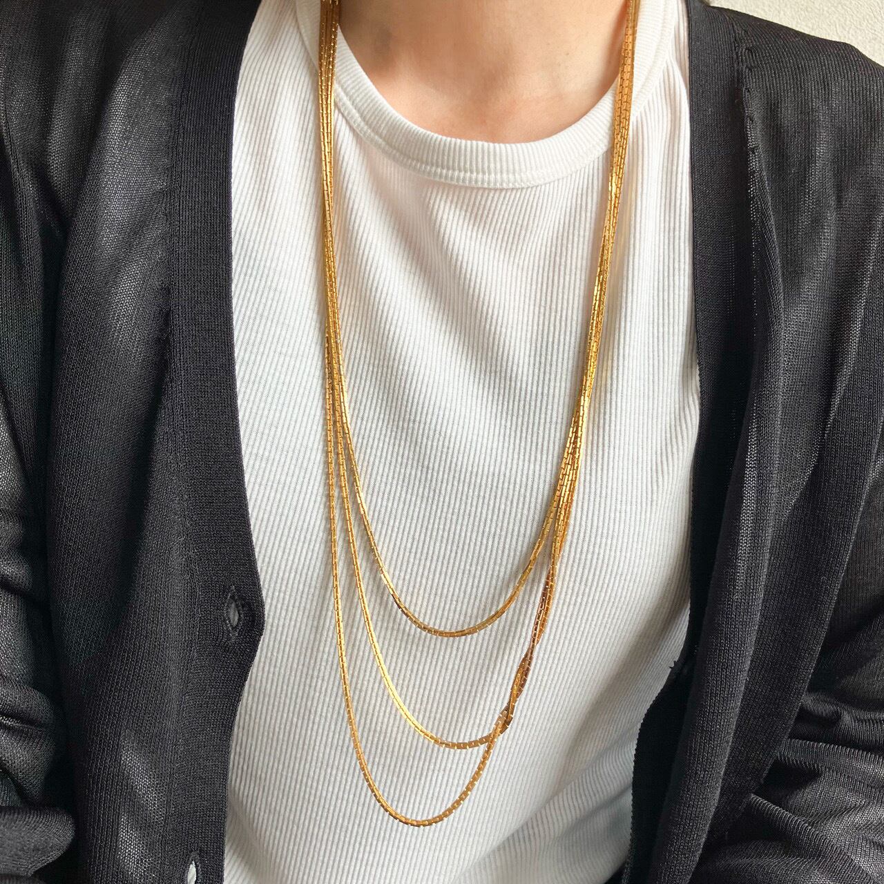 落ち着いたゴールドメタルのクールなスクエア型チェーンで三連になったお洒落なデザインが、とても素敵なヴィンテージネックレスです。