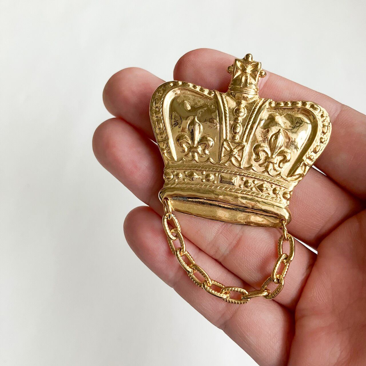 ゴールドメタルの豪華でクラシカルな王冠のデザインがとても素敵な、ヴィンテージグラスホルダーピンブローチです。