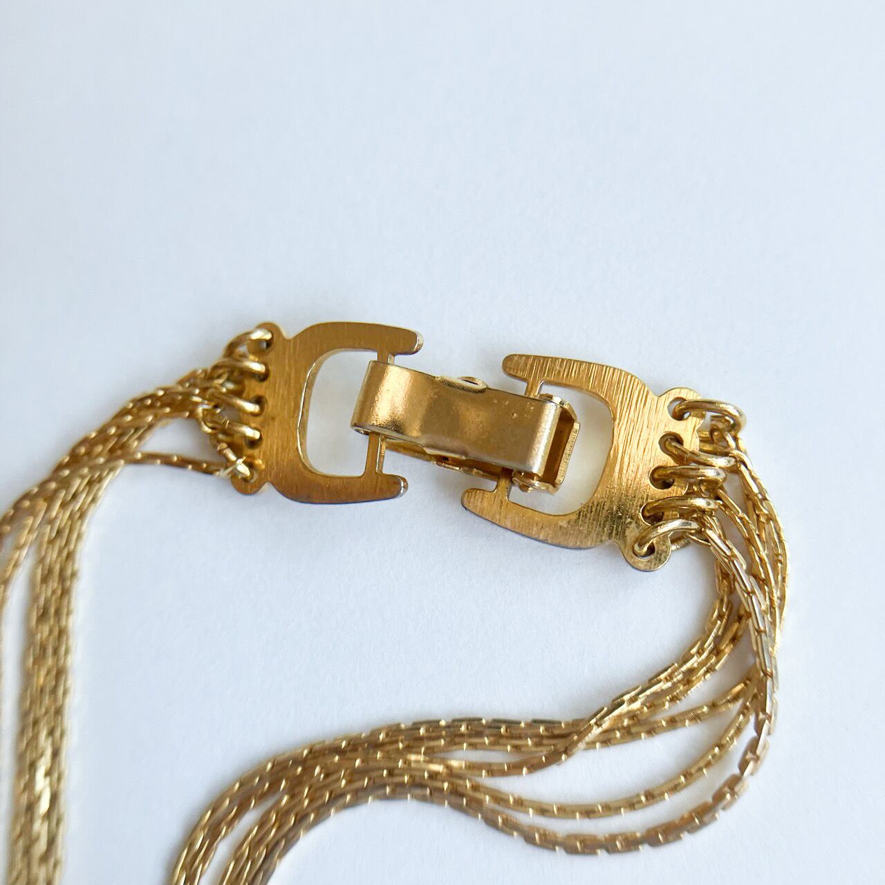 ゴールドメタルの繊細でシャープなチェーンで五連になったお洒落なデザインが、とても素敵なヴィンテージネックレスです。