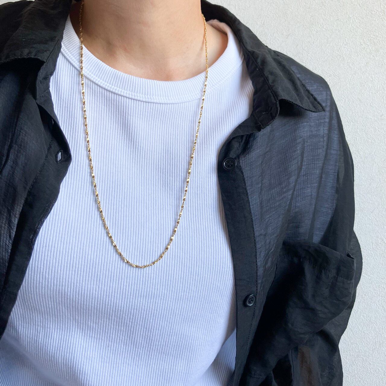 ゴールドメタルの光が反射してさりげなくキラッとするチェーンの、シンプルながらお洒落なデザインが、とても素敵なヴィンテージネックレスです。