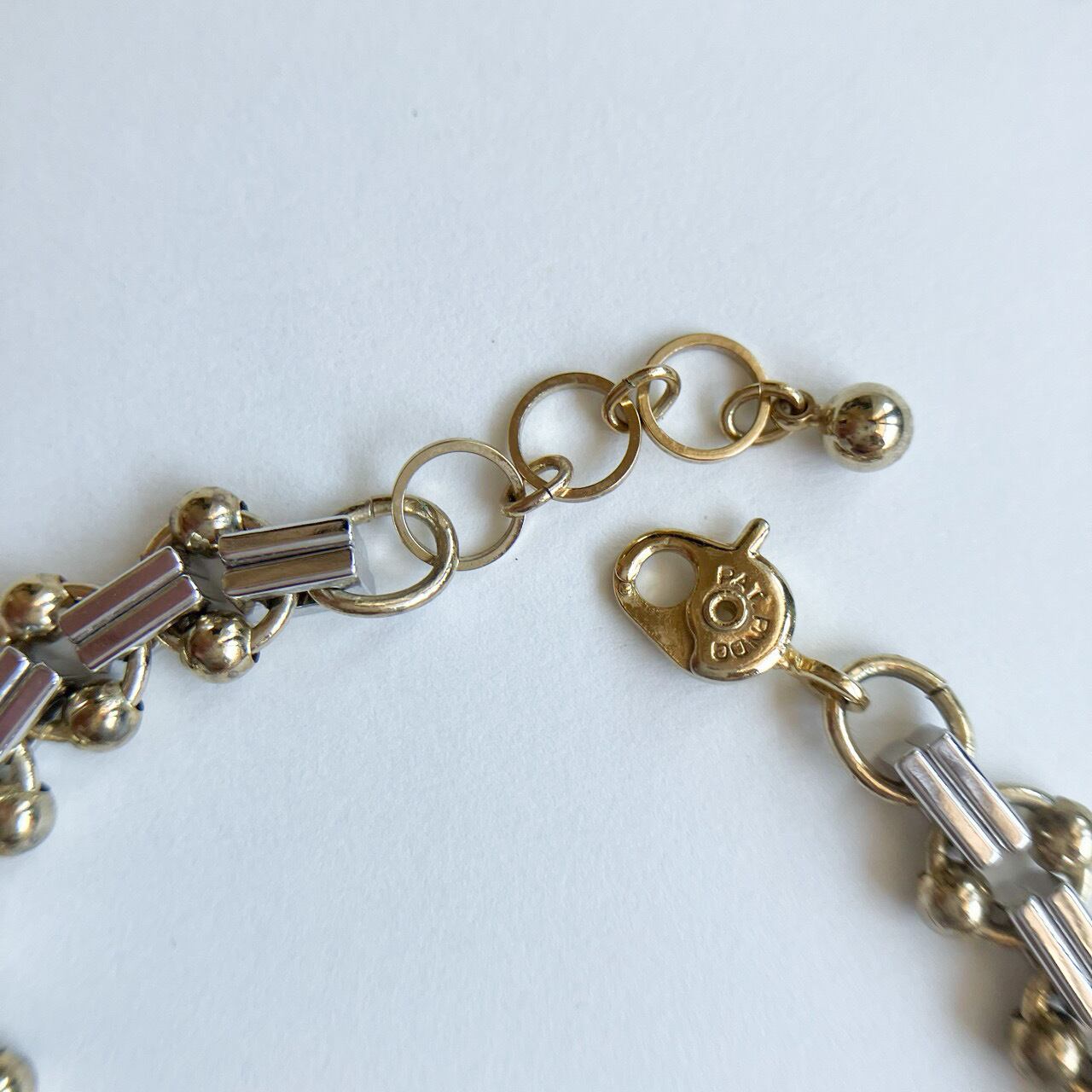 シルバーメタルとゴールドメタルのデザインされたチェーンのデザインが、とても素敵なヴィンテージブレスレットです。