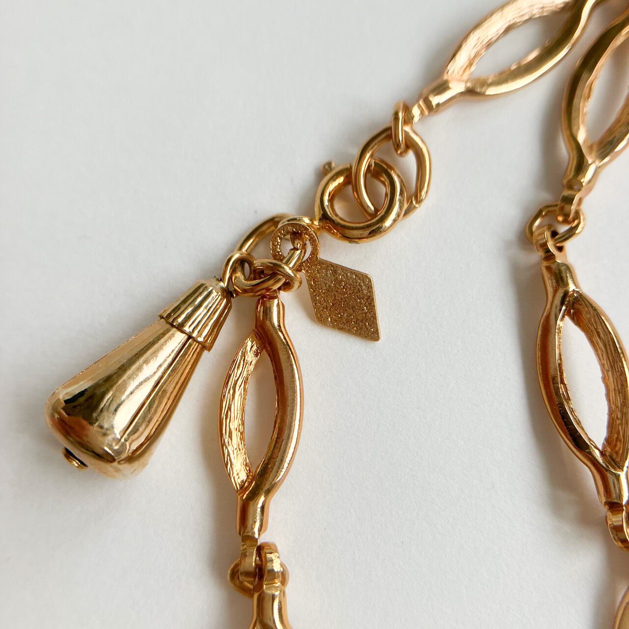 1949年に設立されたジュエリーメーカー”Sarah Coventry”(サラコベントリー )の、さりげない艶と加工のゴールドメタルのパーツが連なったシンプルで洗練されたデザインが、とても素敵なヴィンテージブレスレットです。