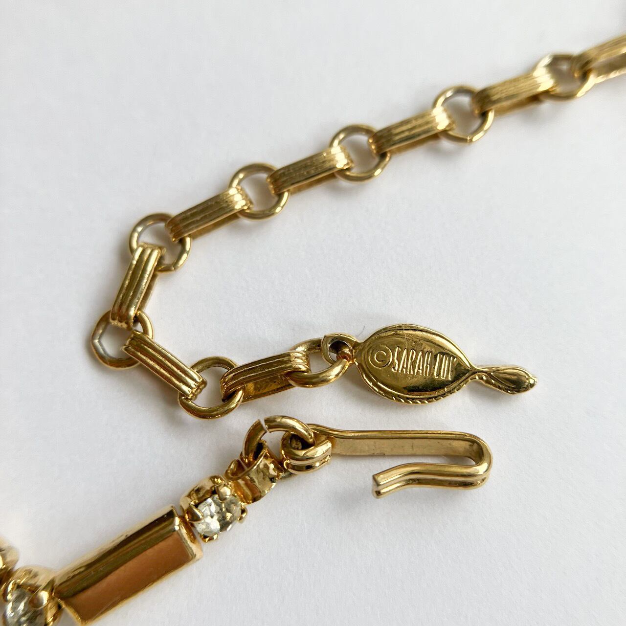1949年に設立されたジュエリーメーカー”Sarah Coventry”(サラコベントリー )の、ゴールドメタルにクリアラインストーンのクラシカルで装飾的なデザインが、とても素敵なヴィンテージネックレスです。