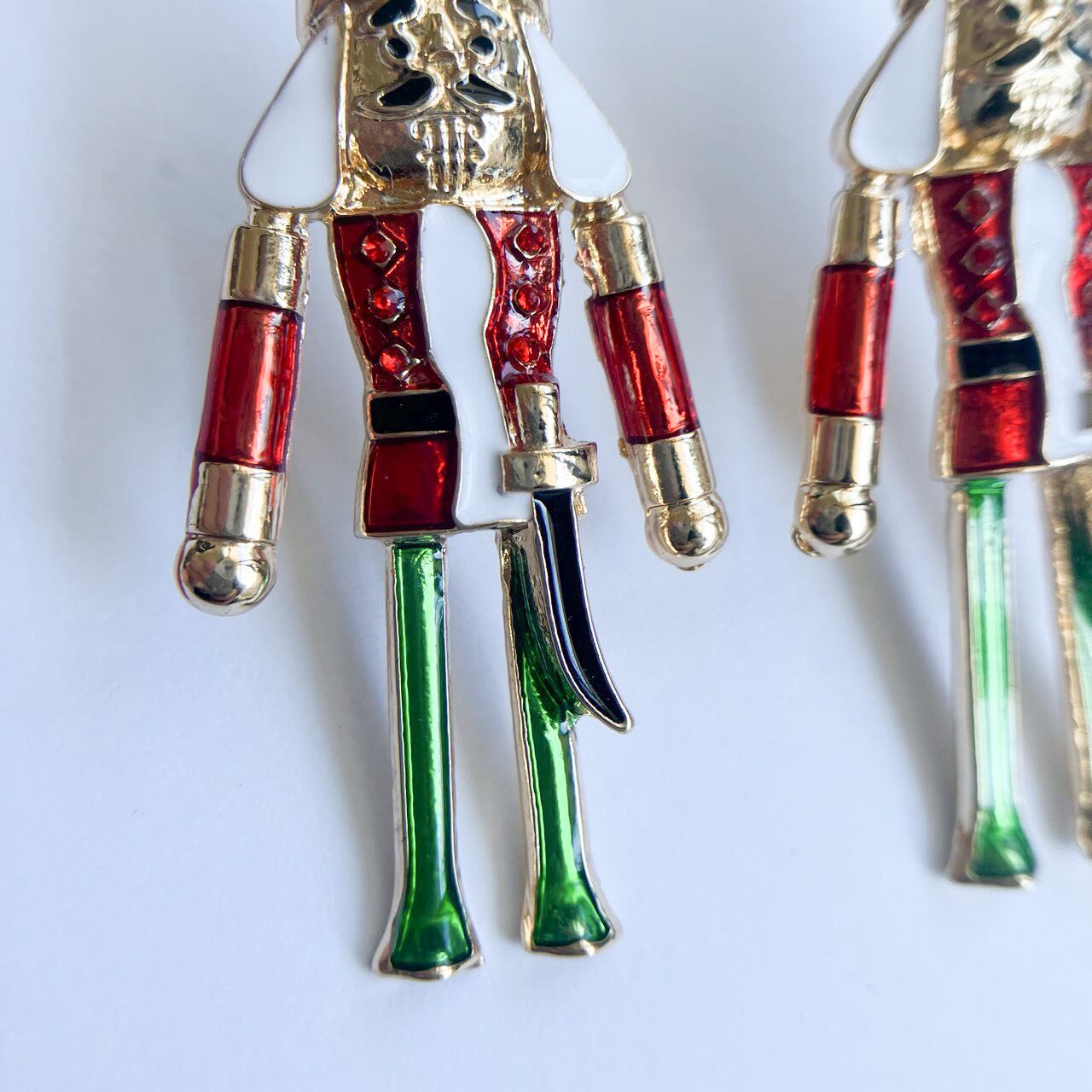 明るいゴールドメタルの土台に、きれいなエナメルペイントがされたナッツクラッカー(くるみ割り人形)のユニークなデザインが、とても素敵なヴィンテージピアスです。