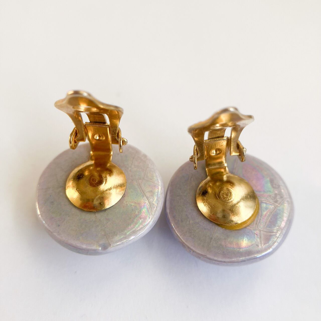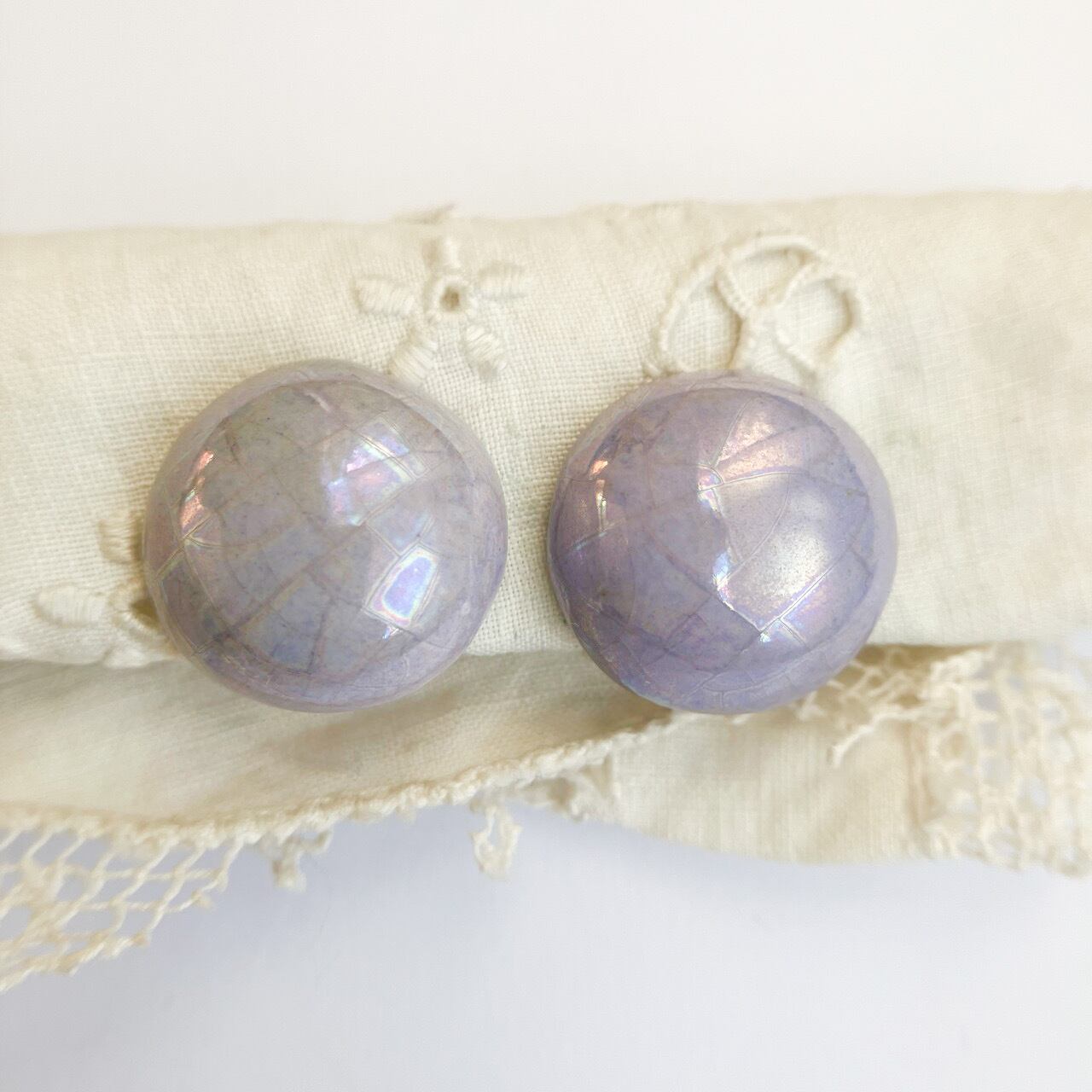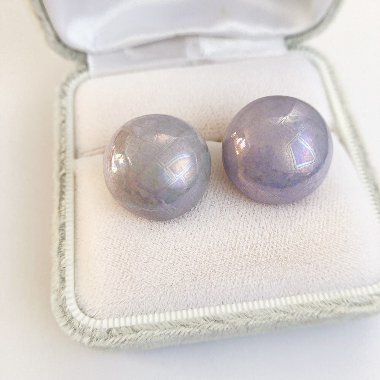 表面にさりげないオーロラパール感のような光のある優しいラベンダーパープルが、とてもきれいな立体的なドーム型イヤリングです。