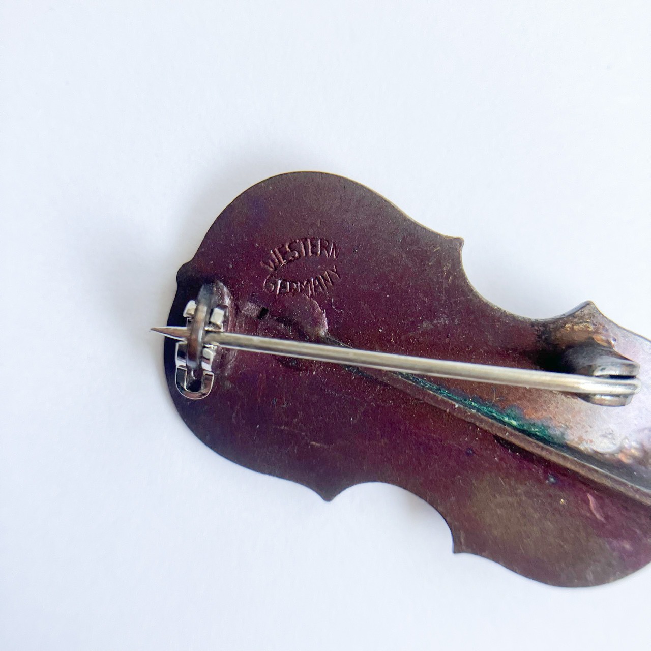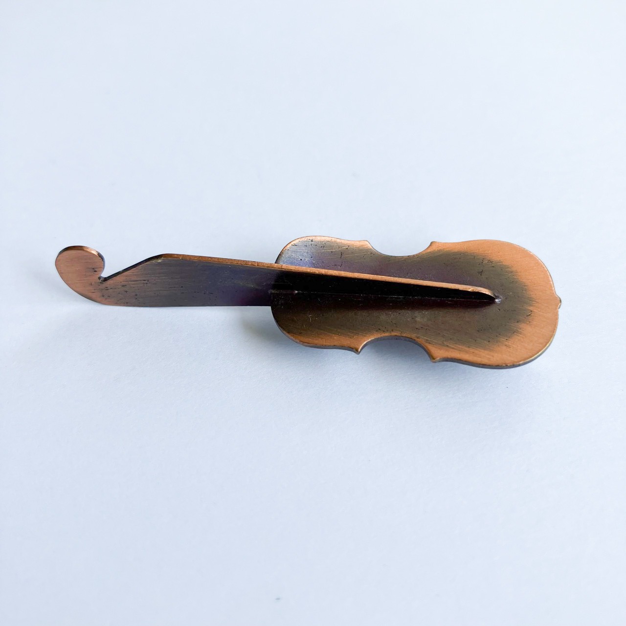 落ち着いた雰囲気のcopper(銅)が使われたモダンなヴァイオリンのデザインが、とても雰囲気のある素敵な西ドイツ製のヴィンテージブローチです。