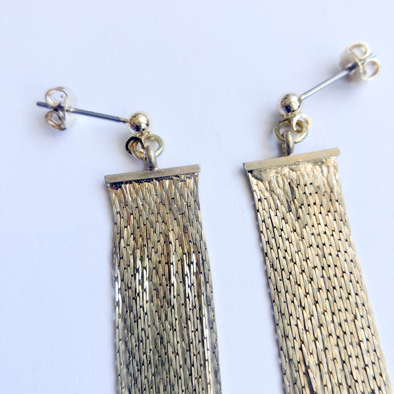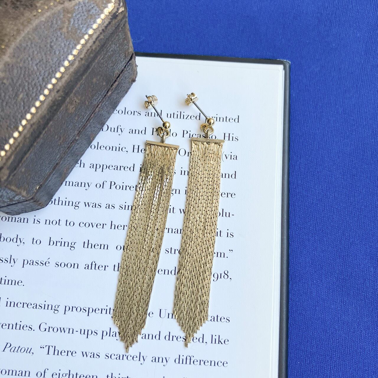 落ち着いたゴールドメタルの、繊細なフラットチェーンがフリンジのように揺れるデザインが、とても素敵なヴィンテージピアスです。