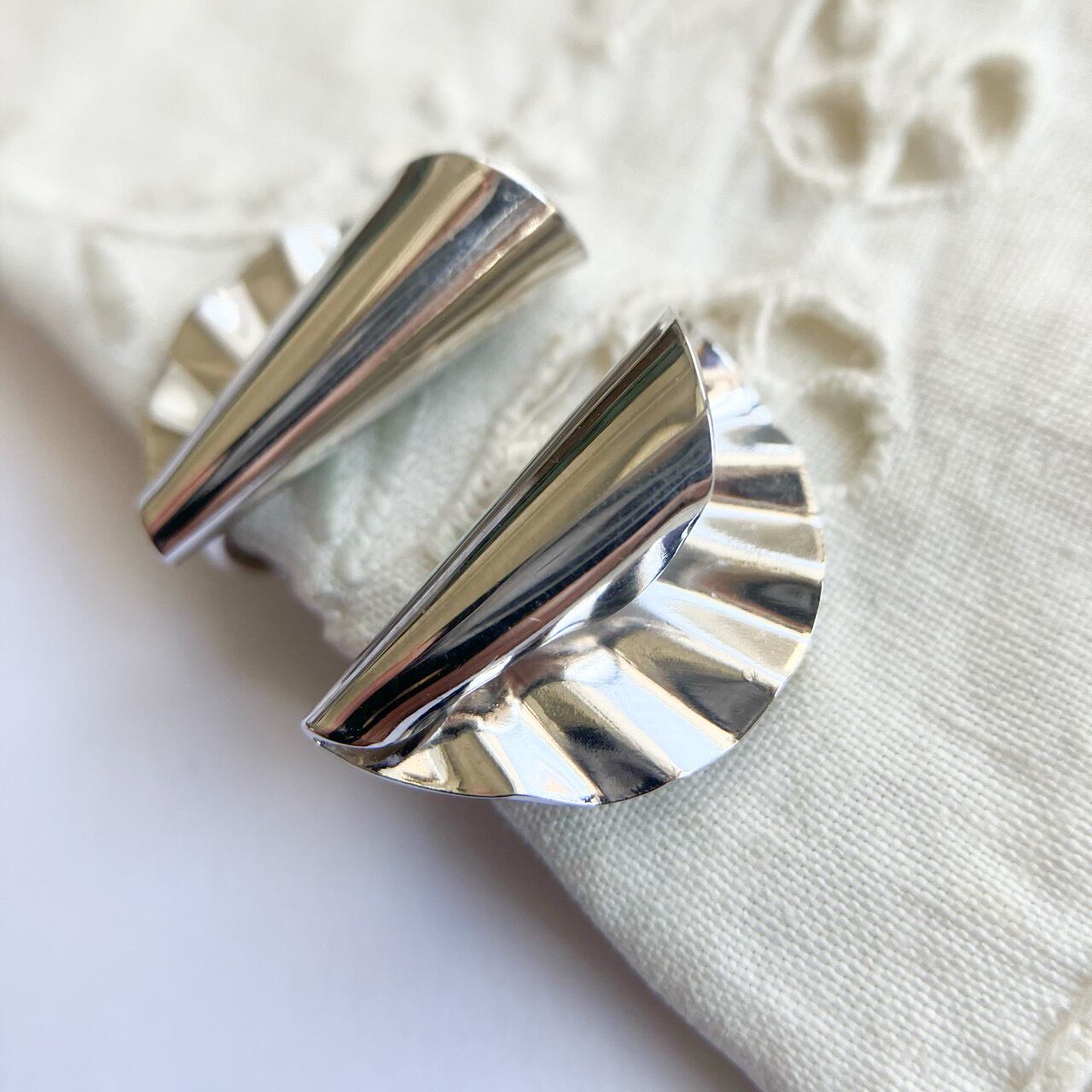 シルバーメタルの立体的な丸まりとプリーツのユニークなオブジェのようなデザインが、とても素敵な”AVON”(エイボン)のヴィンテージイヤリングです。
