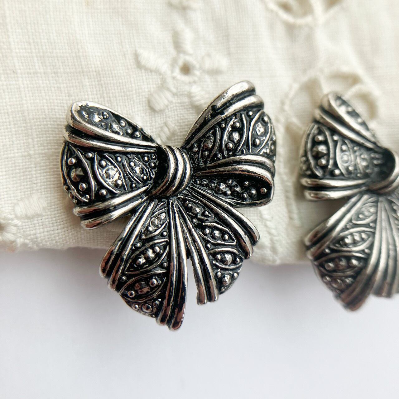 アンティーク調シルバーメタルのクールな雰囲気のリボンのデザインが、とても素敵な”AVON”(エイボン)のヴィンテージイヤリングです。