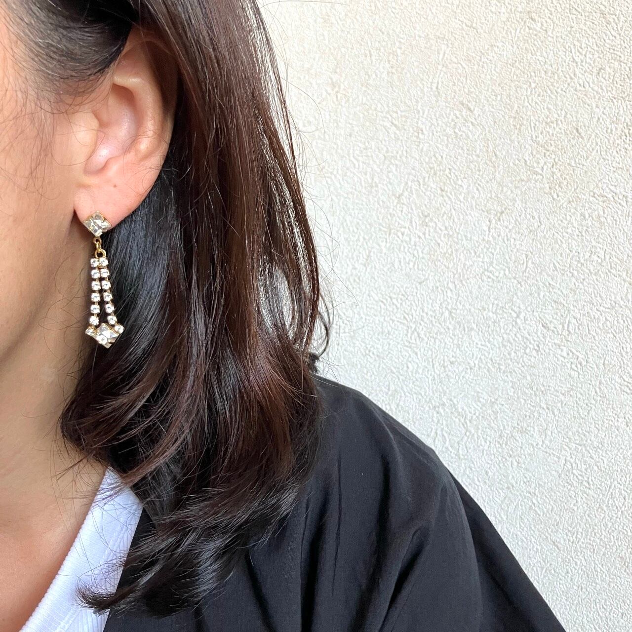 rhinestone dangle design pierce[p-1249] ヴィンテージピアス